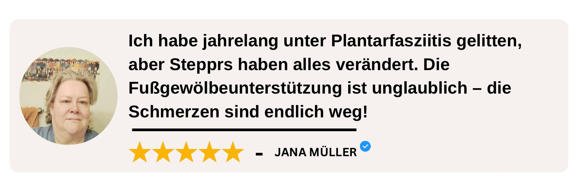 Ich stehe im Beruf täglich viele Stunden – früher hatte ich ständig Fuß- und Rückenschmerzen. Seit ich Stepprs nutze, ist das vorbei. Endlich wieder schmerzfrei laufen!