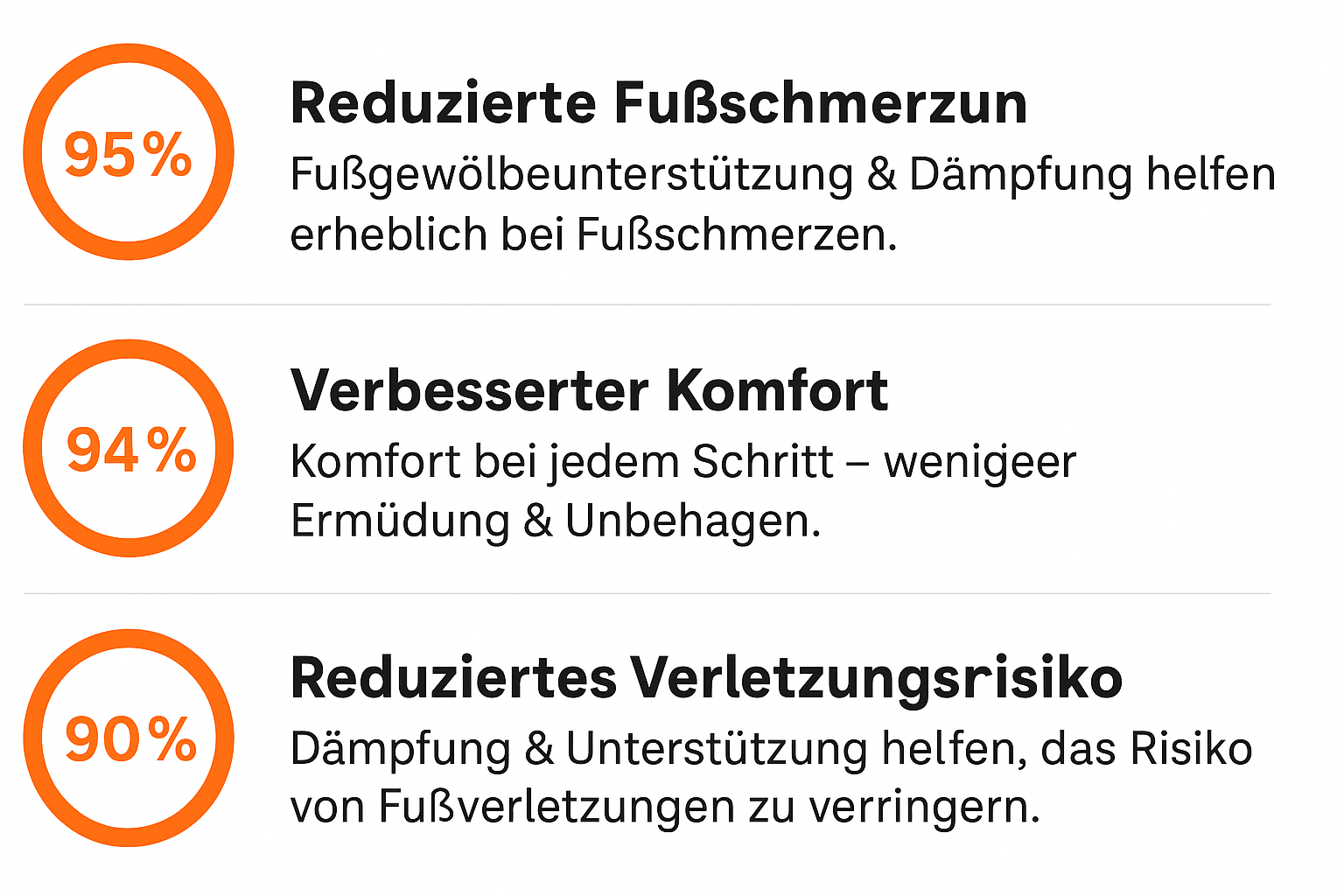 Unsere Einlegesohlen bieten hervorragende Unterstützung und Dämpfung, um Beschwerden zu lindern und die allgemeine Fussgesundheit zu verbessern.